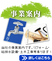 トイレや排水の詰まり、水栓のパッキン交換など小さな仕事から承ります!お気軽にお申し付け下さい。お住まいに関するご相談・ご用命は、お電話か当サイトのお問合わせフォームまでお問い合わせ下さい!